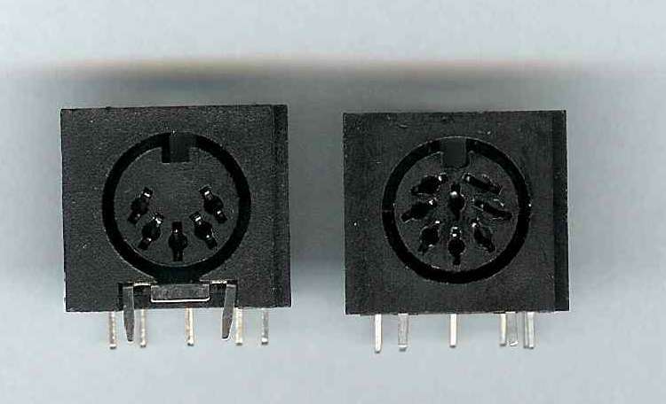Auf der Suche nach einer passenden 8poligen Buchse für den Spielhebel habe ich festgestellt, daß die derzeit handelsüblichen 8poligen DIN-Buchsen sowohl auf der Anschlußseite als auch in der Bauform (Fußabdruck) abwärtskompatibel zu 5poligen Buchsen sind.