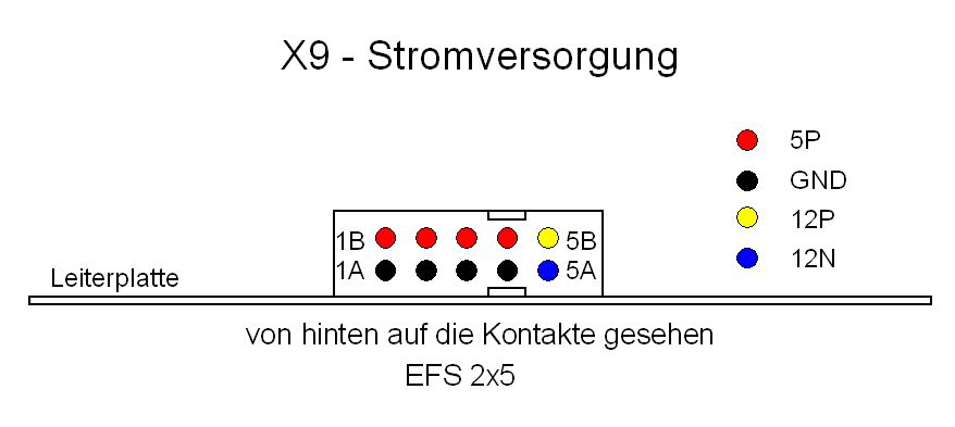 Die Stromversorgung wird über den Steckverbinder X9 geführt: