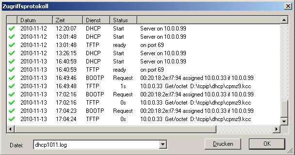 Damit das alles funktioniert, ist neben dem TFTP-Server noch ein BOOTP/DHCP-Server existieren, von dem die notwendigen Daten zum Einrichten der Netzwerkkarte des Z9001/KC87 geholt werden. Einen freien BOOTP-Server gibt es zum Beispiel bei